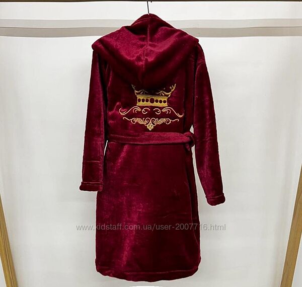 Халат дитячий з довгим рукавом, зав´язується на запах під пояс, є великий капюшон, на одній полочці є кишеня, декорований вишивкою на спині, дуже теплий, комфортний.Полотно вельсофт.