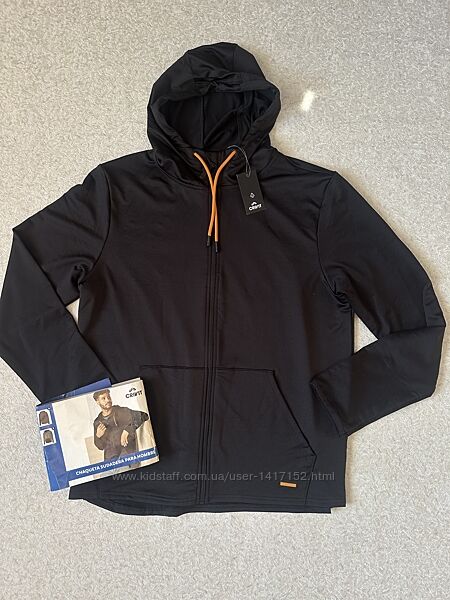 Чоловіча спортивна кофта від німецького бренду crivit. З природним ефектом контролю запаху завдяки переробленій кавовій гущі. Відведення вологи. Капюшон зі шнурком. З кишенею-кенгуру. Довша спина. Повна блискавка з захистом для підборіддя. Оптимальна посадка, яка зберігає форму завдяки волокну LYCRA® З переробленою високоякісною блискавкою від бренду YKK. Матеріал: 93% поліестер (35% перероблений), 7% еластан (LYCRA®). Розмір М 48/50 євро: довжина по спині 70 см, ширина під руками 57 см, довжина рукава від плеча 68 см, від плеча до плеча 47 см. Колір: чорний