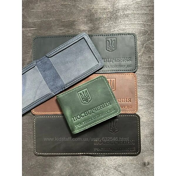 Матеріал: Натуральна шкіра Фактура шкіри: Crazy Hourse Розміри розгорнуті: 22,5 x 8,5 x 0,2 см Країна виробник: Україна Шкіряна обкладинка для посвідчення учасника бойових дій України.