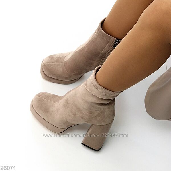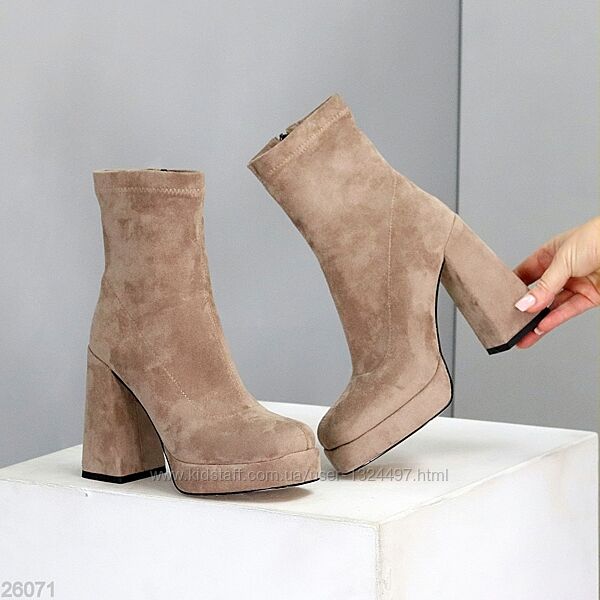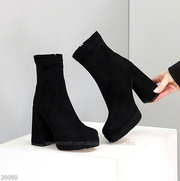 Подробное описание: Ефектні ботильйони замшеві на масивному високому підборі Код 26069