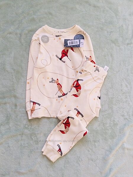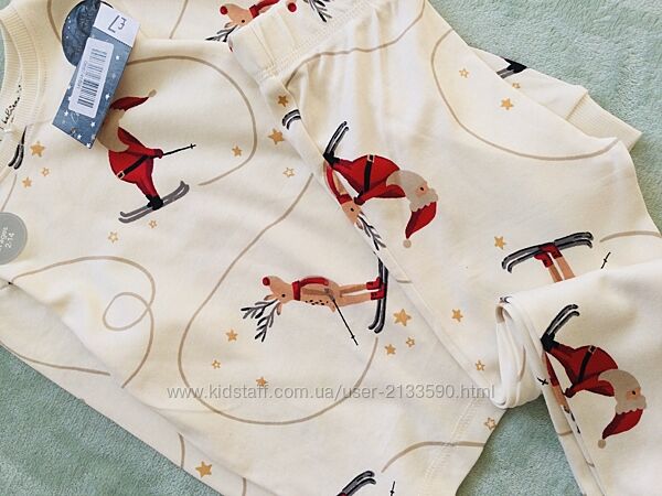 98-104 зріст George Новорічна трикотажна піжама з Сантою, Оленем та Різдвяним принтом 100% бавовна на манжетах.Домашній комплект. яскравий принт.