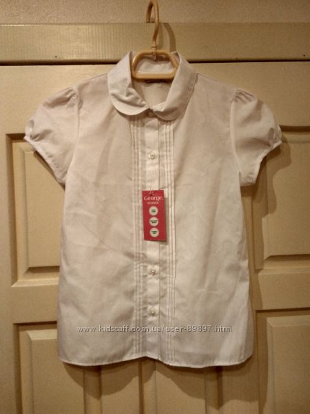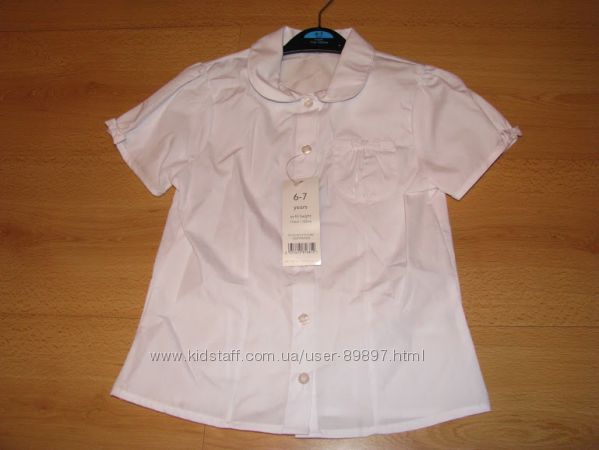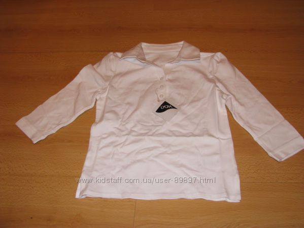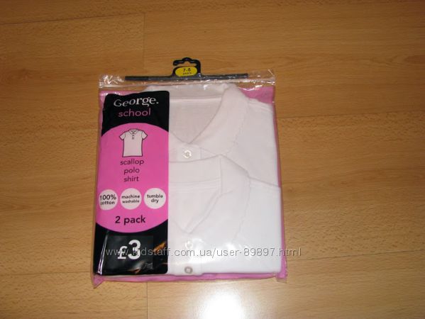 Предлагаю вашему вниманию новые школьные блузы, регланы, гольфики для девочек известной фирмы George (Англия).Футболочки-поло белого цвета, состав ткани - 100% коттон, размер 7-8 лет (122-128), в упаковке 2 штуки. цена одной футболочки 255 грн, цена за упаковку 465 грн.