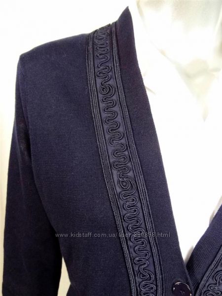 Фото 6 -7 - кардиган Anne Klein L, на одной пуговице, тонкой вязки, 54% шелк, 46% лен. Цвет -темно-синий. Замеры - длина - 70 см, пог -54 см, рукав -66 см.