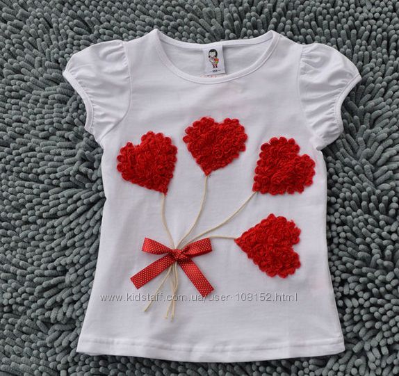 Фото 5: Белая футболка с четырьмя красными сердечками, размер 100 - 250грн