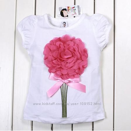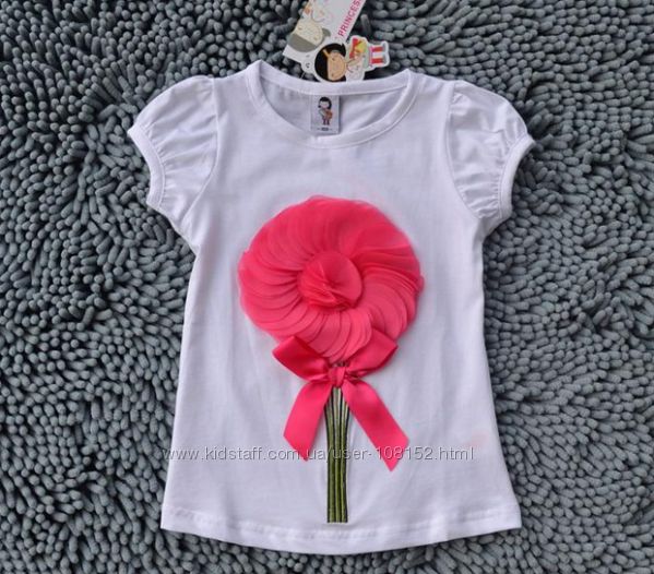 Фото 9: Белая футболка с малиновым цветком из шифона, размер100 - 250грн