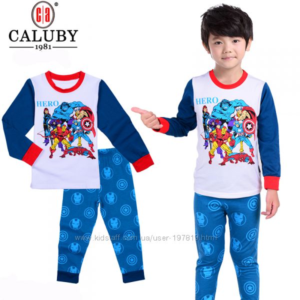 Детские пижамы CALUBY мальчикам 2Т-7Т. Супергерои, Супермен, Бэтмен, Паук.