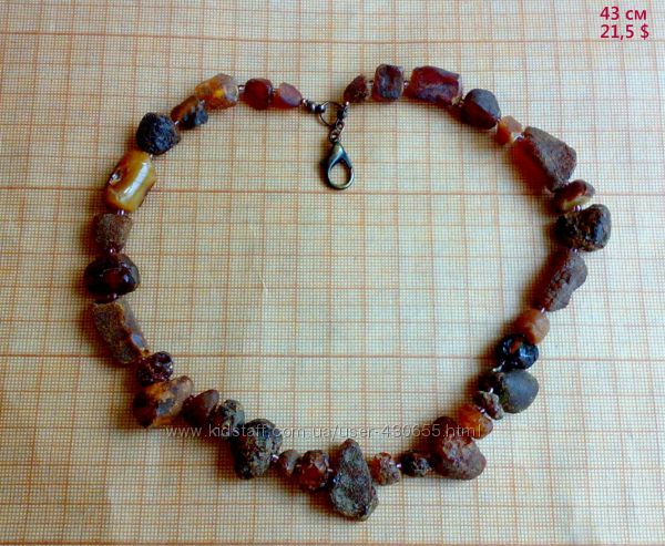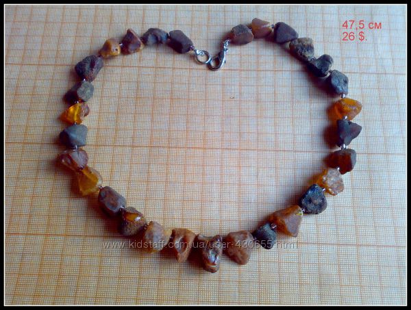 Давно доказано, что янтарь как щит, предохраняет организм от новых заболеваний, защищает организм от ухудшения существующих заболеваний, а беременным женщинам помогает более спокойно выносить и родить ребенка. И это не легенда. Янтарь защищает от стрессов, успокаивает нервную систему - и это все благодаря наличию в янтаре янтарной кислоты и всех необходимых организму микроэлементов. Поэтому, в лечебных целях нужно носить на теле бусы из необработанного янтаря. Такие бусы носят и женщины, и мужчины, все, кто хочет быть здоров как можно дольше.В представленных бусах камешки-бусины различных цветов и прозрачности - от светло-лимонного до темного непрозрачного цветов - источник микроэлементов и янтарной кислоты - сохранили свою природную форму и максимум целебных свойств.