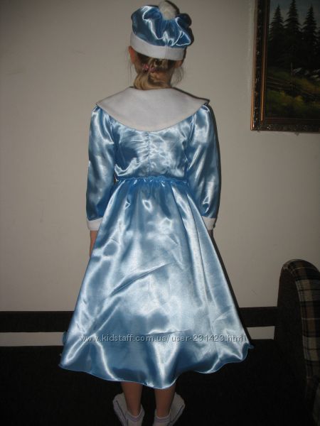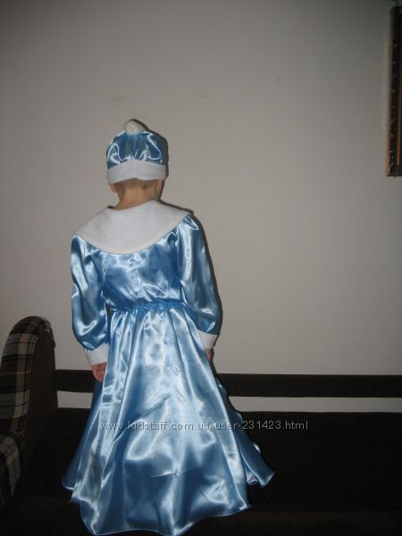 Продаж карнавального костюма Снігуроньки на 5-7-річну дівчинку (реальний ріст 110-135 см). Складається з плаття і шапочки. До плаття можна одягнути кільця.На фото у хлопчика ріст 112 см, у дівчинки - 135 см (рукави получаються 3/4).