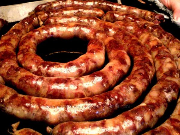 Гурка-страва поширена на Закарпатті, Гуцульщині та Прикарпатті. Залежно від компонентів заповнення має регіональну відмінність. Крім цього, в кожному будинку є свій особливий рецепт, який зберігається в таємниці. На Закарпатті гурку наповнюють рисом, легенями, печінкою, шкварками. Гуцульська гурка наповнюється кукурудзяною крупою, шкварками, цибулею. Роблять її з кров´ю.Звідки сама назва – невідомо, швидше за все – угорського походження, хоча є припущення, що шведське. Шведська (gurka) - означає огірок, на який так схожий шматок гурки.Та й незалежно від походження назви, давайте готувати цей делікатес.Нам знадобиться:Легке – 700гр.Серце – 600гр.Мова – 600гр.Щока або інша жирна свинина (підчеревок) із шкіркою – 500гр.Шкварки – 200гр.Рис – 3 склянкиЦибуля ріпчаста - 5 шт.Сіль, чорний мелений перець.Кишка – близько 4 мУ киплячу підсолену воду занурити начинки і варити 1 годину.М´ясо відварити окремо до м´якості шкіри. У бульйоні від м´яса відварити рис, посолити. Рис має бути розсипчастим. Цибулю обсмажити на смальці до легкої золотистості.Начинки, м´ясо порізати і пропустити через м´ясорубку з великими осередками або порубати. Цибуля, шкварки - так само змолоти на м´ясорубці.Змішати фарш із рисом, шкварками, цибулею, посолити, додати мелений перець (перцю даємо багато – має бути добре поперчено).Кишки попередньо намочити у воді на пів дня, потім добре промити.Промиваємо підготовлену кишку та за допомогою шприца наповнюємо фаршем, не туго, але без повітря.Наповнену кишку перев´язуємо на ковбаски по 15 см. Раджу в´язати по 2-3 шт. (на порцію) - при обсмажуванні перед подачею фарш не виповзе з боків.Перев´язані ковбаси проварити у воді протягом 10-15 хв, при температурі води 80-85 оС.Вийняти з води та дати охолонути.Відкласти у морозилку, холодильник.Перед подачею обсмажити на смальці або соняшниковій олії, попередньо проколивши з усіх боків зубочисткою, спочатку при низькій температурі, а потім на високій до скоринки.Смачного.Надсилаю тільки Новою поштою.УКРПОШТОЮ НЕ відправляю.