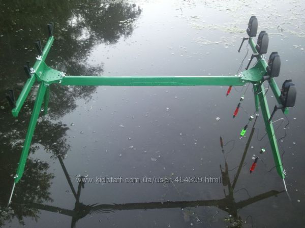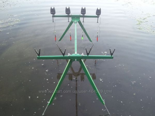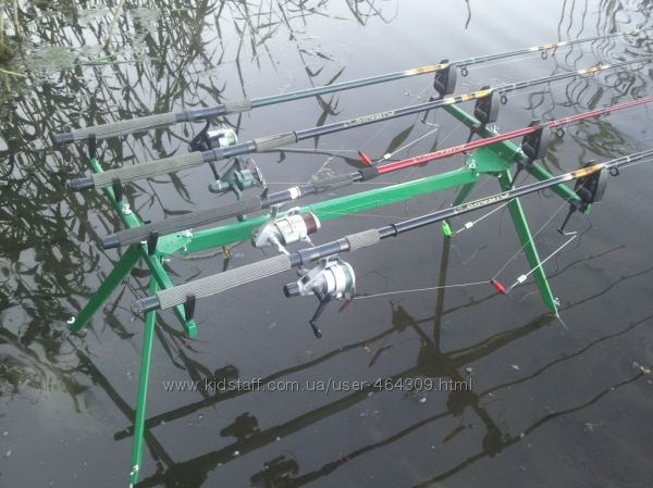 под на 4 вудилища компактний та стійкий, міцно і надійно утримує ваші вудилища при сильному клюванні (регулюються кожна ніжка (опора) по висоті), роблячи вашу рибалку комфортніше незалежно від рельєфу тамісця риболовлі (фабрично виробляються на території України).