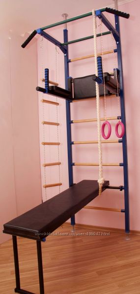 Продам детский спортивный уголок 3500 гривен. В комплекте: шведская стенка, турник, кольца, верёвочная лестница, канат. Вариант крепления подбирается индивидуально, цвета в ассортименте.Также реализуем спортивный комплекс для взрослых 5400 гривен, спорткомплекс детско-взрослый 5800 гривен.