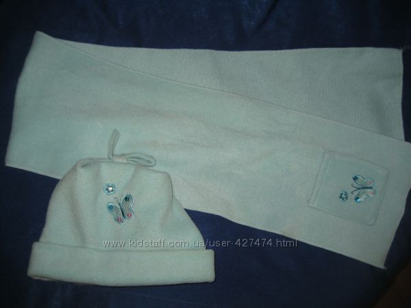 Фото1Полосатий к омплектик : шапочка, рукавички і шарфик. Дуже яскраві, насичені кольори-85грн.Фото2 Зимовий комплектик шапочка і шарфик приблизно на 4-6рочків. Ніжно-голубого кольору. На шапочці та шарфику оригінальна вишивка метелика з блискітками.
