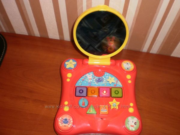 компьютер Свинка Пеппа играет музыка из мультфильма, издает звуки различных музыкальных инструментов, хрюканье, дает задания найти нужный цвет, смех Пепы, названия нарисованных предметов на экрана загораются правильные ответы красочно оформлен нарисованы любимые персонажи фирма CIDE toys - продан, компьютер с зеркалом издает звуки нарисованных музыкальных инструментов играет коротенькие мелодии при этом на экране загораются голографические картинки-чайник, мышка, паучок, звездочка чем быстрее мелодия тем быстрее они моргают фирма Marks and Spencer PLC- продан, компьютер фирмы Витэк VTech поет песенки называет названия нарисованных предметов и геометрических фигур и много разных звуков при этом на экране горят разные клеточки - 280 грнмой магазин по ссылке