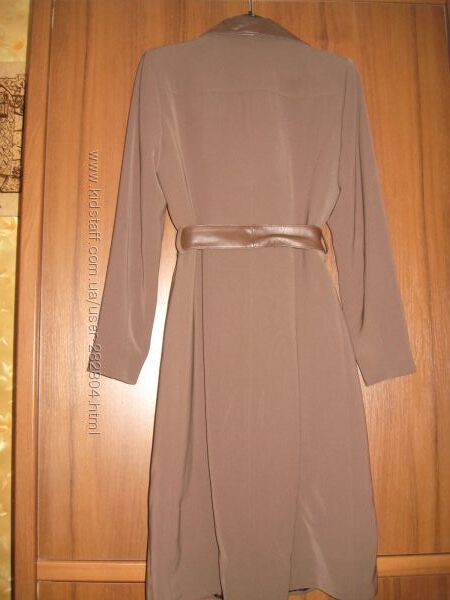 Новий плащ Absolu Confort Paris з Франції. Відгуки про одяг цієї фірми є в інтернеті, одяг догогий і фірмовий. Ні разу не одягався. Купувався за кордоном, але мені не підійшов по розміру. Пояс і комір - шкірзамінник. Зверху - поліестер, не мнеться. Застібається на 4 гудзики, 2 кишені по боках застібаються на блискавки. Розмір приблизно наш ураїнський 44-46, треба міряти. Довжина від коміру ззаду до низу 112 см., рукав по внутрішньому шву 44 см., по зовнішньому 62 см. ( без плеча ).