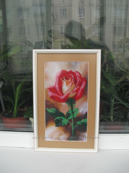 Продам картину бисером "Роза" - Красная роза символизируют любовь, Золотая роза – символ церкви, небесного благословления и радости. Картина станет цветовым акцентом, пятном, оживляющим и освежающим интерьер в Вашем доме. Картина выполнена чешским бисером, смотрится красиво и необычно, размер картины - 40/26, деревяная рамка, стекло - антиблик.
