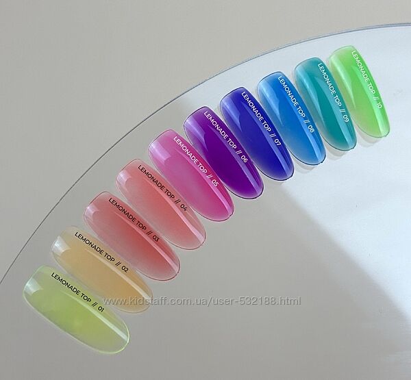 Lemonade top 8 мл — це кольоровий топ без липкого шару, який тримає блиск до 4-х тижнів. Топи мають велику палітру з найтрендовіших відтінків на будь-який смак.