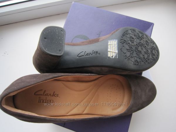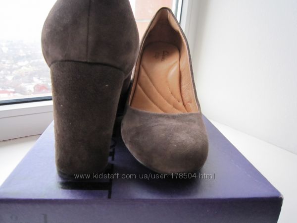 Дівчата!Туфлі Clarks замші р.38,5-39. По устілці 25.5-26см, всередині м´яка устілка з супінатором. Зручний стійкий підбор 8,5 см. Дуже м´які. Нові. Замовила собі. Проліт з розміром. На мій нар. 38 завеликі.