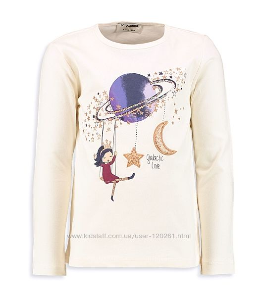 Фото 4- Молочно-БЕЛЫЙ НАРЯДНЫЙ РЕГЛАН с Золотой аппликацией ДЕВОЧКА, ЗВЕЗДЫ и ПЛАНЕТЫ