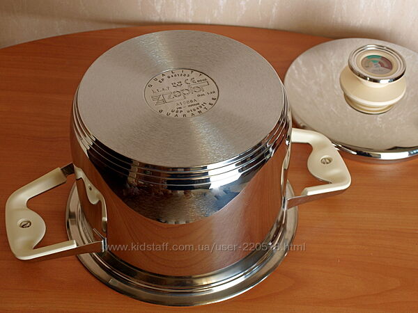 Запатентованное Термоаккумулирующее компактное дно присоединено к корпусу кастрюли с помощью пресс машины, которая оказывает давление до 2000 тонн (без склейки или спайки), что делает дно посуды компактным и неразрушимым.