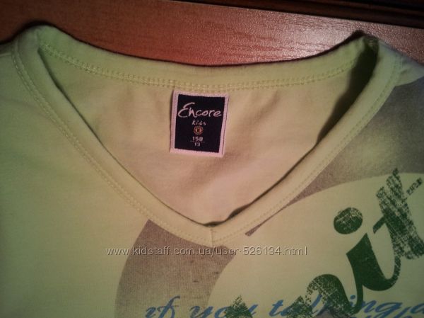 Продам две футболки ENCORE 11-12л. (152см.), и 13л. (158см.) по 60 грн. в идеальном состоянии.ENCORE 11-12л. (152см.): длина - 54-55см.; ширина - 41,5см.; длина рукава - 15см.; длина плеча - 11см.
