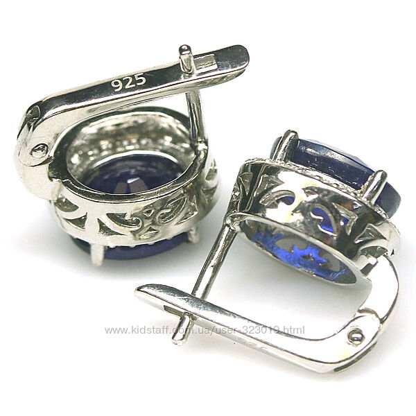 Подробное описание: Серьги. Природный сапфир. Серебро 925.