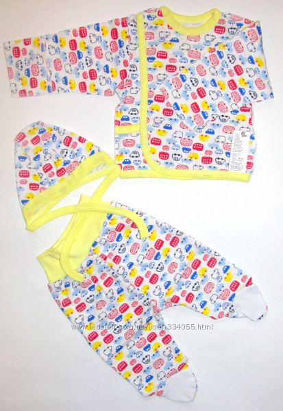 Подробное описание: Набор в роддом, рост 56, 62 см, 3 предмета, интерлок, Маяки