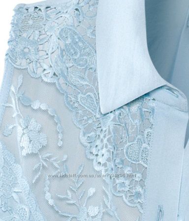 ФОТО3-4 - блуза небесно-голубого цвета,спереди вставка из кружева,размер 12 (наш 46). Состав ткани-полиэстер.