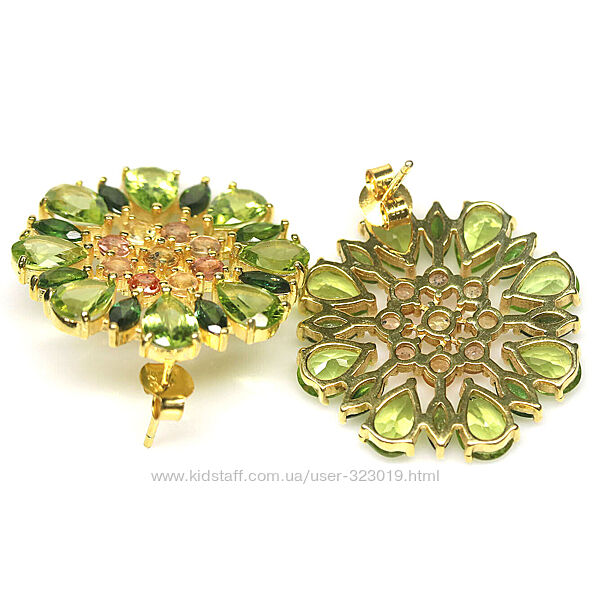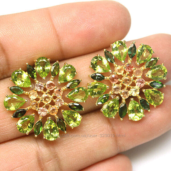 Серьги. Природный перидот хром диопсид сапфир. Серебро 925.