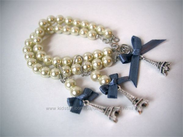 Металофурнітура, керамічні бусіни під молочні перлиг, атласна стрічка, силіконові заглушки на швензах. Браслет подвійний, зібраний на ювелірному тросику.ЦІНА браслета - 180грн.