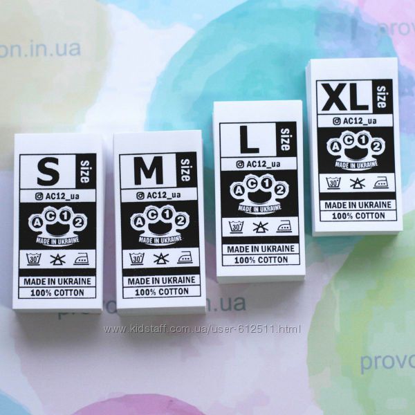 Изготавливаем текстильные бирки для одежды, бирки вшивные с составом ткани цена расчитывается по запросуЗаказы просчитываются и печатаются индивидуально по вашему запросу/макету/логотипу, для точного просчета нужно выслать запрос в чат provokation.in.ua