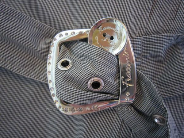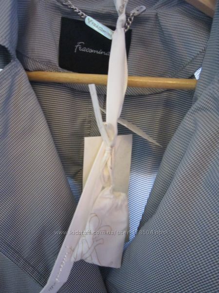 Плащ фірми Fracomina, тканина ПЕ, дрібна сіра клітина, без підкладки, р.S, ПЕ-100%. Ґудзики та пряжка прикрашені дрібними стразами та фірмовим логотипом. Виміри: ОГ, під пахвами 46см, довжина рукава 61 см, довжина по поличці 84см. З бірками.Другие объявления продавца