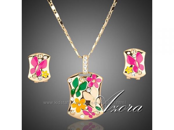 Красивый оригинальный набор из высококачественного ювелирного сплава с золотым 18-каратным покрытием.Длина цепочки: 45 см + 5 см
