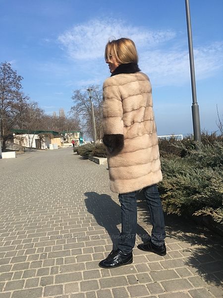 Бежевая норка + соболь ворот и рукава, S-40000 (с перчатками)