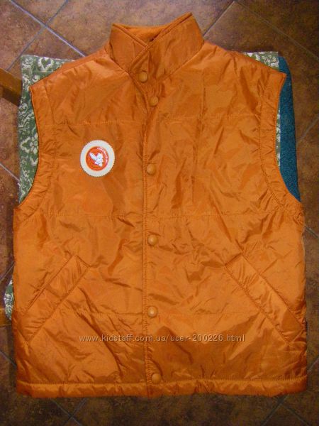 Бомбезная фирменная куртка - безрукавка OLD NAVY, Отличное состояние. Рост 110-122 ( 116 на этикетке). Верх плащевка, не продувается и не промокает, внутри флисовая. Легкая, толстенькая, теплая и прочная, на тонком синтепоне.