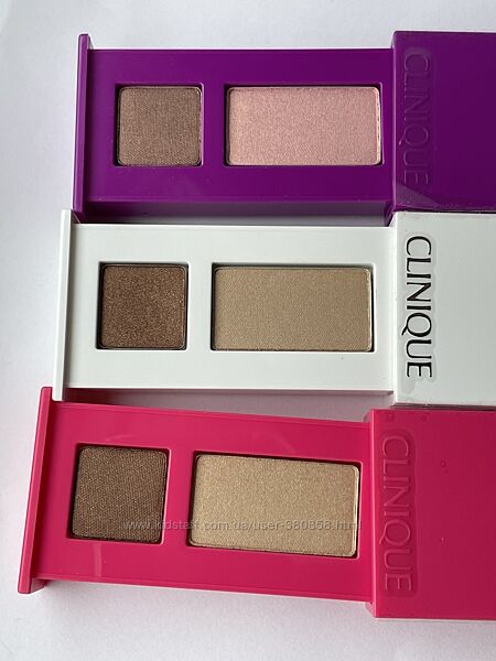 Фото 5-6- Палетка тіні та бронзер Clinique — оригінал зі США, частина з набору. розмір палетки — 11 х 5 см. Вага — тіні — 4,4 г, бронзер — 2,5 г. 2 тіней матові (ліворуч угорі та внизу) , решта з шимером. Прострочка по коду