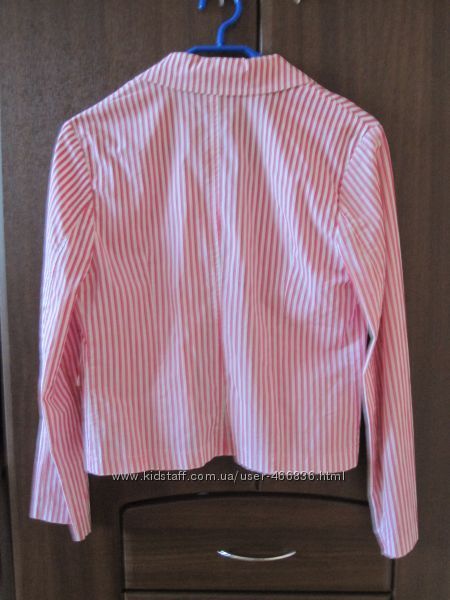 Продаю:фото 1-2 Летний хлопковый жакетик (97% хлопок, 3% эластан) белый в красную полоску, застегивается на одну пуговицу, б/у в нормальном состоянии, подойдет на наш размер 44-46. - 60 грн.