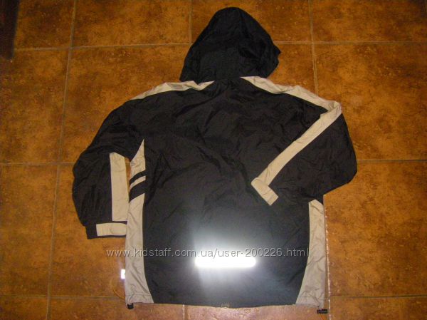 ЧЕРНАЯ С ОРАНЖЕВЫМ Демисезонная куртка-ветровка-дождевик JENTEX . Привезена из Германии. В отличнейшем состоянии, подойдет для мальчика 10 лет. Верх плотная плащевая ткань с покрытием подкладка сеточка. Не промокает и не продувается. Капюшон прячется в воротник.