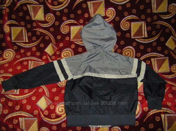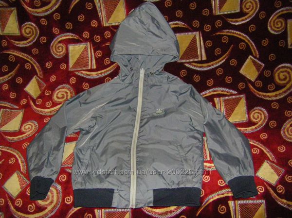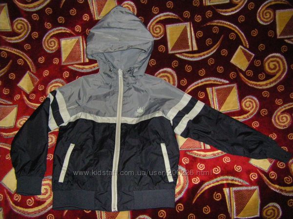 СЕРАЯ Демисезонная двухстороняя куртка-ветровка-дождевик В отличнейшем состоянии, подойдет для мальчика 7-8 лет. Верх плотная плащевая ткань с покрытием подкладка сеточка. Не промокает и не продувается. Капюшон прячется в воротник.