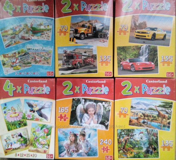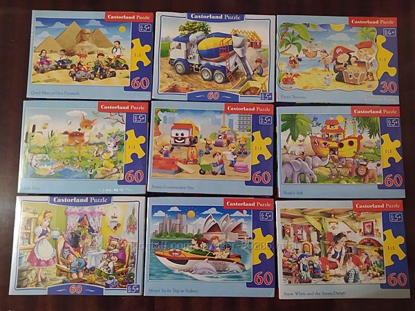 Продам пазлы Castorland, G-TOYS на 30, 35, 60, 70, элементов, а также пазлы 4 в 1 для самых маленьких30 элементов - Контурный рисунок, картинка 32×23 см,