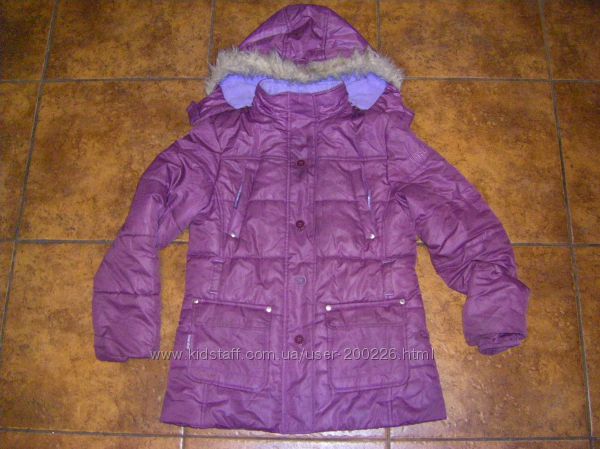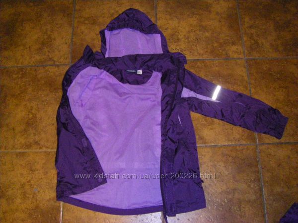 Ветровка фиолетового цвета Crivit в очень хорошем состоянии . Для девочки 9-10 лет, р. 134-140. Верх прочная ткань с пропиткой Бионик Эко. Капюшон прячется в воротник. Двойная ветрозащитная планка, доволна качеством на все 100 %.