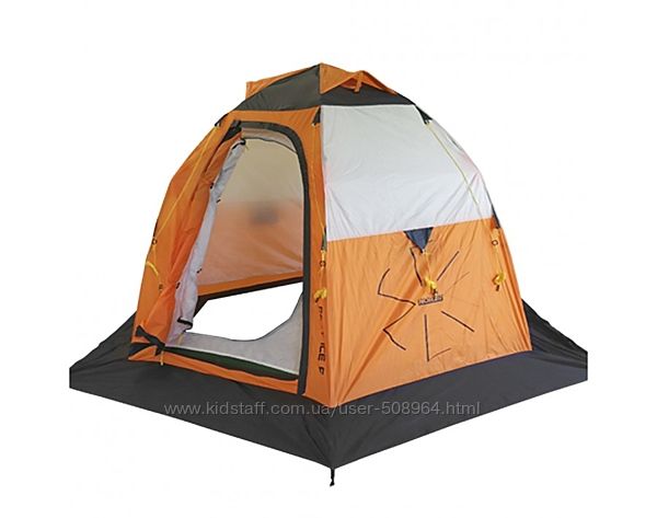 Полуавтоматическая палатка, открывающаяся по типу зонтика. Каркас – трубчатое стекловолокно диаметром 8 мм. Жесткая конструкция легко разбирается и компактно укладывается в сумку для переноски. Палатка оборудована 2 раздельными входами, оборудованными двухсторонними замками-молниями. На каждом входе имеется окно с сеткой. С помощью шторок можно регулировать освещенность внутри палатки, полностью открыв или закрыв их. В верхней части расположены вентиляционные отверстия, которые при необходимости можно закрыть. Внутри палатки, на стенках, 4 кармана для рыболовных мелочей. Снизу, по периметру палатки – снегозащитная юбка – полог. Для надежного закрепления палатки на льду используется прилагаемый комплект растяжек и крючков..
