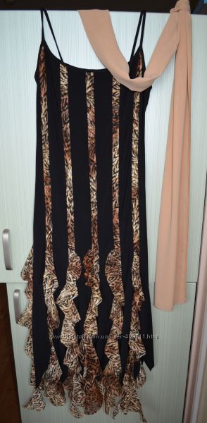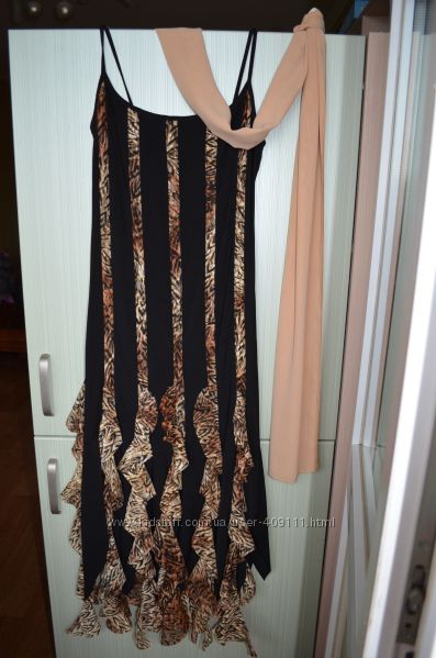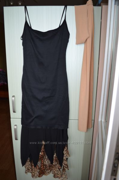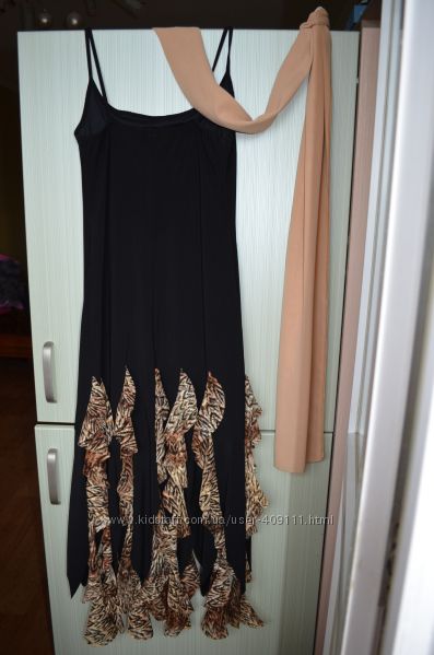 Вечернее платье (размер 44) качество супер, ткань хорошо тянется (похоже на плотную вискозу) соответственно отлично садится по фигуре, есть подкладка из вискозы. Покупала за 650грн в магазине. Состояние идеальное одевалось 1 раз на свадьбу подруги.Замеры: длина от бретелек к низу 123см, ПОТ 36см, ПОГ 37см хорошо тянется за счёт резинки сзади, подойдёт хорошо на объём груди 90-92см и объём бёдер до 93см.