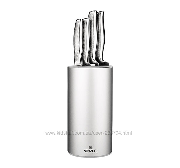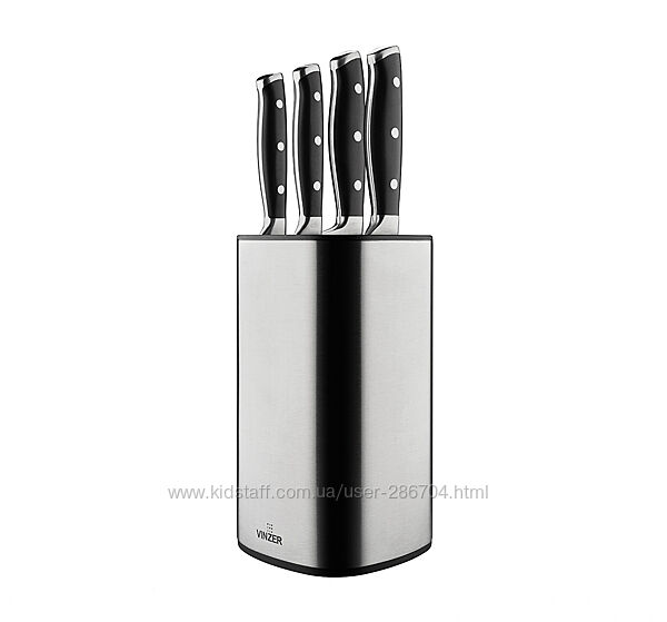 Набори ножів Vinzer — це високоякісні кухонні інструменти, які відзначаються міцністю, ергономічністю та оригінальним дизайном. Вони виготовляються з високоякісної вуглецевої або молібден-ванадієвої нержавіючої сталі, що гарантує довгу гостроту лез та стійкість до корозії. Набори часто комплектуються зручними колодами для зберігання та мають естетичну подарункову упаковку.Vinzer пропонує широкий асортимент наборів, що дозволяє підібрати варіант, що відповідає будь-яким вимогам та бюджету.