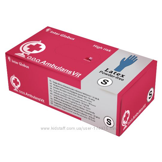 Рукавички латексні: гладкі пудровані сині, з натурального латексу. Рукавички нестерильні, підвищеної міцності. Зсередини припудрені модифікованим кукурудзяним крохмалем, легко одягаються та знімаються. Мають мікротекстуровану поверхню, яка забезпечує надійний захват. Забезпечують додатковий захист завдяки фіксуючій манжеті. Універсальна форма рукавичок підходить для лівої та правої руки. Рукавички запобігають проникненню мікроорганізмів, не викликають алергії. Для цих рукавичок характерна висока еластичність, стійкість до розриву та протирання. Довжина щонайменше 240мм.Застосування: латексні рукавички дозволяють виконувати тонкі роботи завдяки щільному приляганню до руки. Застосовуються для миття посуду, прибирання, будь-яких господарських робіт, медичним працівникам, технічним працівникам.