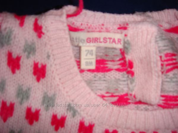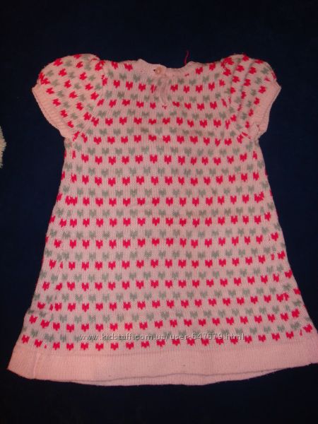 Вязаное теплое платье на короткий рукав с бантиком 74 см, 9 месяцев, 1 год