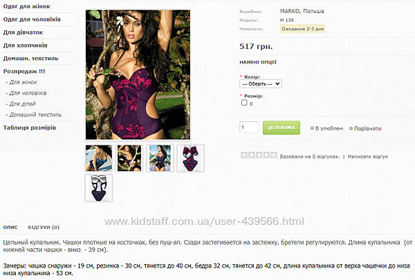 Качественные польские купальники.Фото 1: размер L/S, 450 грн. В размере L/S : грудь - 75 С, 80 B, 80C / бедра - до 94 см, рост - до 164 см. Длина купальника (от подгрудного шва - вниз) - 44 см.