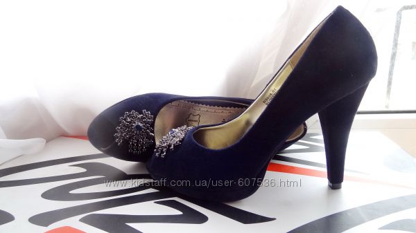 на стопу 23-23.5 см роскошные ,стоящие туфли!качественно выполнены и самое главное удобная ,устойчивая колодка,каблук около 10 см.платформа 1.5 см в подносочной части