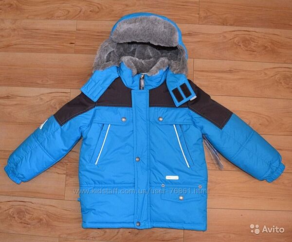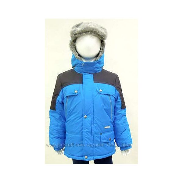 Куртка имеет капюшон с козырьком из искусственного меха, капюшон можно отстегнуть. Внутри воротника и части капюшона подкладка из искусственного меха, основная подкладка во всем изделии - гладкая и шелковистая. Спереди два скрытых кармана на молнии со светоотражающими полосками и один накладной карман с клапаном. Под кокеткой пришиты два клапана на кнопках. Низ куртки регулируется кулиской. Синтетический утеплитель нового поколения, ветрозащитная и водонепроницаемая ткань Актив: основная ткань - гладкая, отделочная ткань - в рубчик.