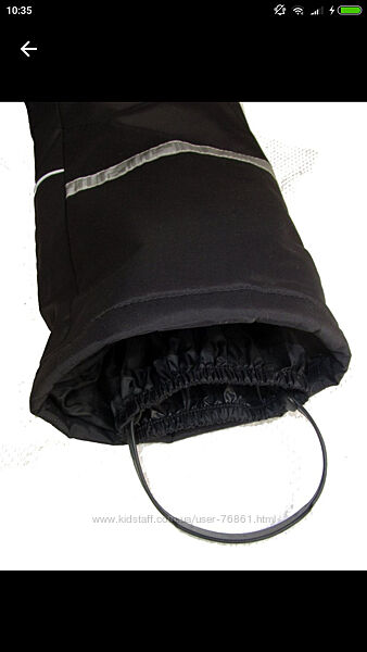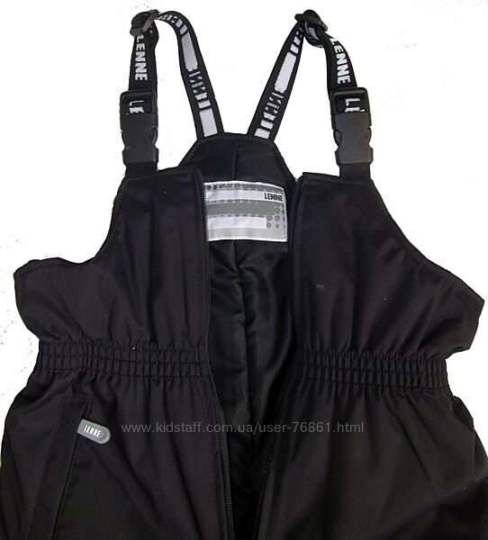 Имеется внутренняя штанина на резинке, предотвращающая попадание снега Полукомбинезон снабжен светоотражателями