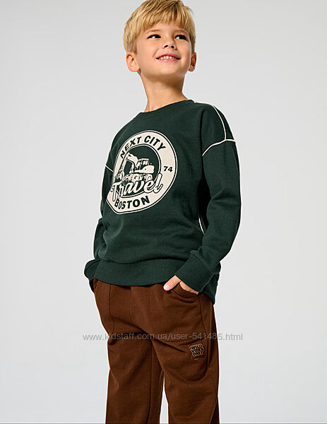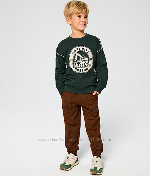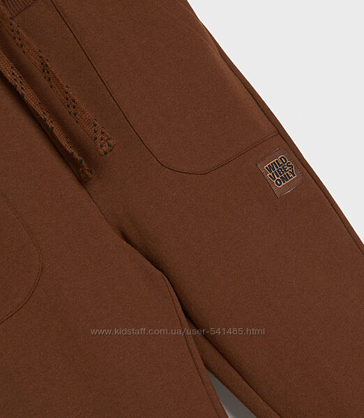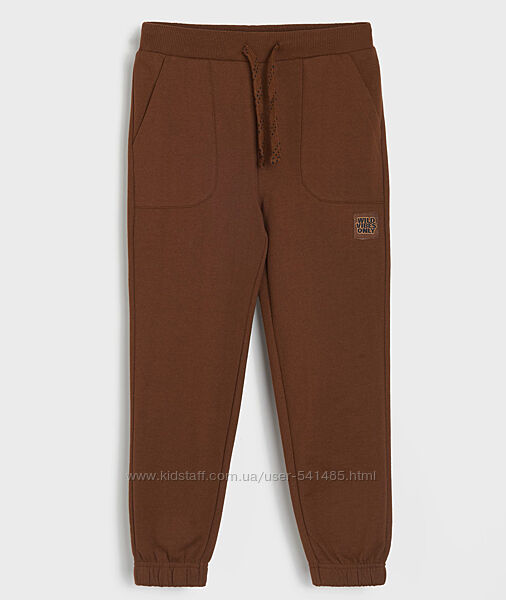 Джоггери для хлопчика з м´якого трикотажу. З внутрішньої сторони начіс, попереду накладні кишені. У поясі резинка і шнурок, що діє. По низу штанін широка резинка. З колекції дитячого одягу польського виробника Sinsay.Розмір у наявності: